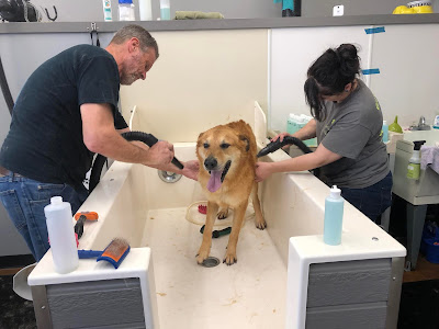 All of the dogs have been blowing coat and depositing it throughout the house. I have never taken a dog to a groomer but enough was enough. My dogs love their pedicurist. Shout out to Doggie Doos and Don'ts owner Rachael! They really do get very excited when Rachael comes to the house. Rachael also owns a Laundromutt. As she left my house with a new fur coat, she suggested that I bring the dogs to get them "groomed".