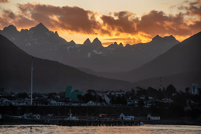 Sunset and Dientes de Navarino Mountains as we left Puerto Williams.