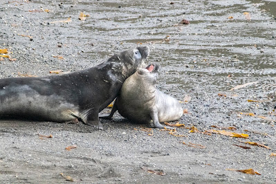 Karukinka National Park, located off the Strait of Magellan, at the end of Jackson Bay is a privately-owned reserve and the Tierra del Fuego archipelago's largest protected land area. With special permission to go to shore, we were greeted by the litter of thousands of plastic bags and containers and the roaring, barking and snorting of a hundred or so, juvenile, male, Southern Elephant seals.